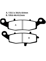 Klocki hamulcowe EBC EPFA229HH A. 133.5 x 36.8 x 8.4mm B. 109.6 x 44.4 x 8.5mm NA LEWY PRZÓD